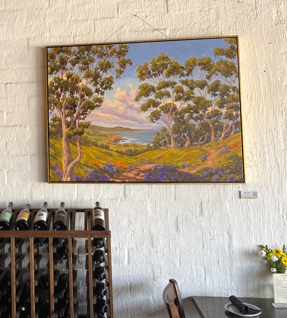 Step into a dreamlike vision of California with California Coastal, my latest large-scale oil painting. Measuring an impressive 48” x 36”, this original work captures the timeless beauty of the California coast—infused with the spirit of early California impressionists and inspired by the breathtaking vistas of La Jolla and Palos Verdes.