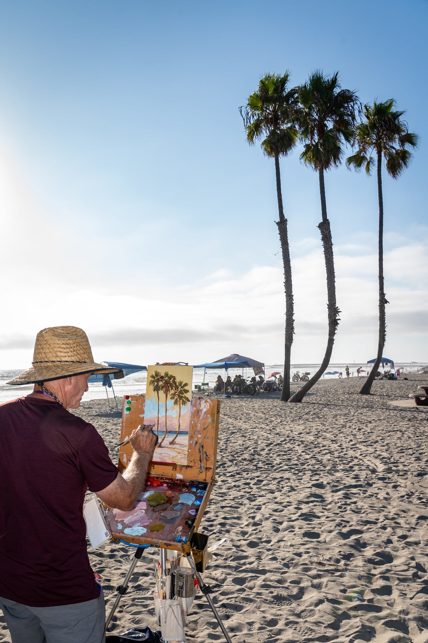 One of my painting efforts from the 2025 Oceanside Plein Air Festival. These beautiful palms sit on the beach just in front of the historic Roberts Cottages in Oceanside, California. We, the artists, had a few hours to capture a scene in and around the group of cottages. During this group "paint-out" I met a bunch of nice on-lookers and the press were there to document the evening!
